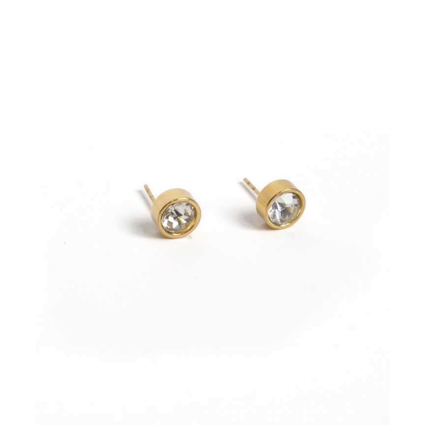 Brinco de cristal facetado, aço inoxidável banhado a ouro 14 quilates, em uma cor: dourado, peça única. Composição: cristal, acrílico, aço inoxidável.