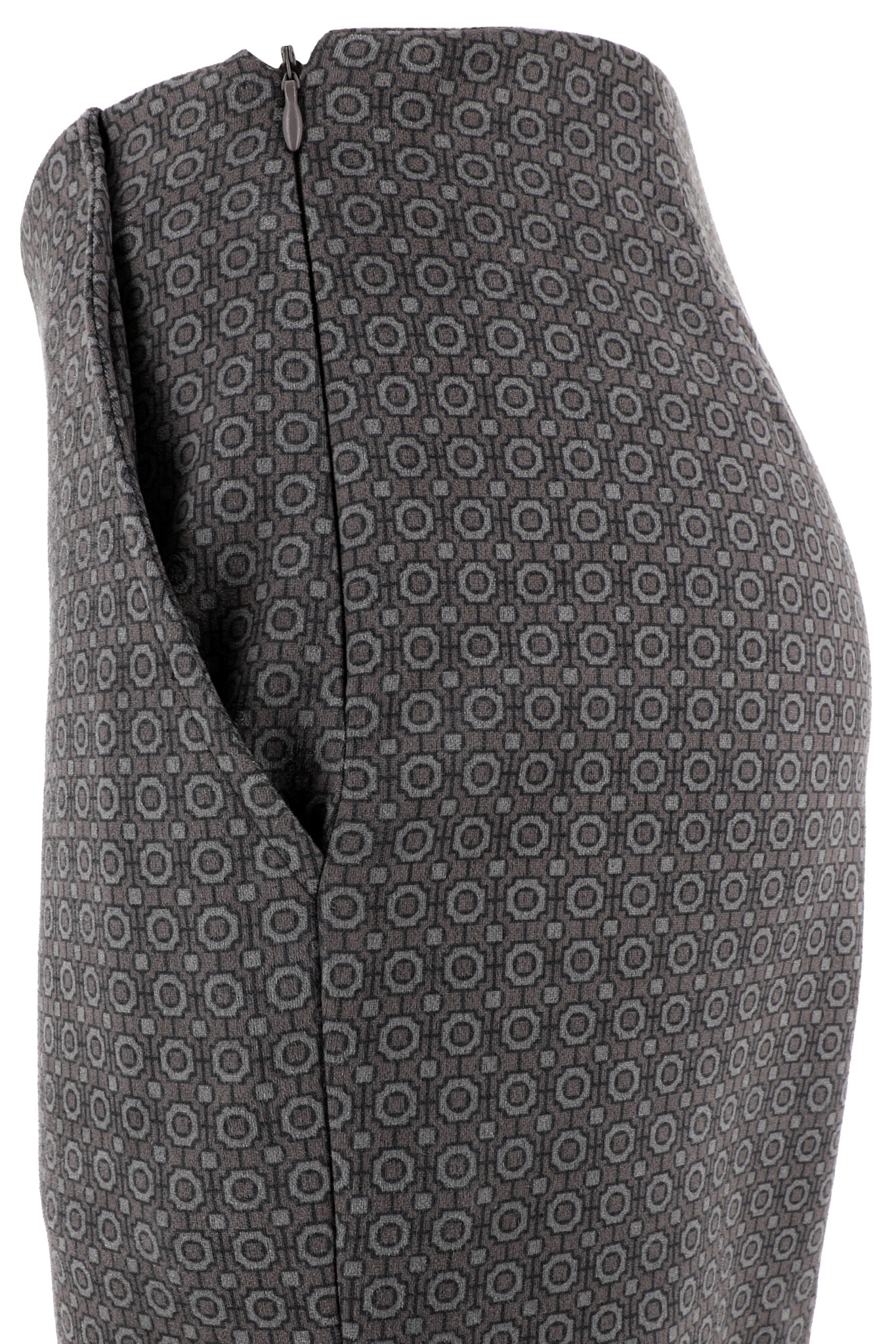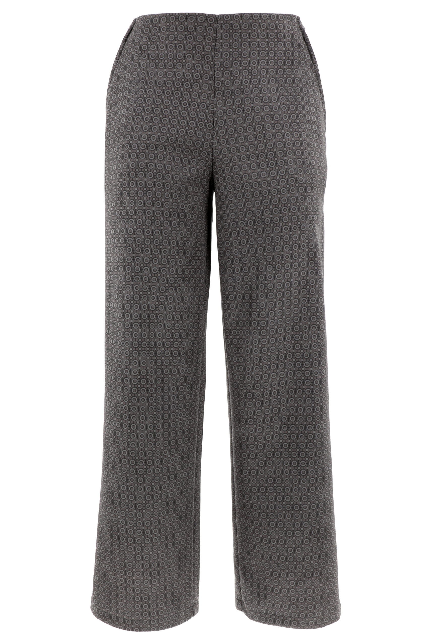 Calça de camurça macia estampada com bolsos laterais inclinados. Zíper lateral. Perna larga, na altura do tornozelo.