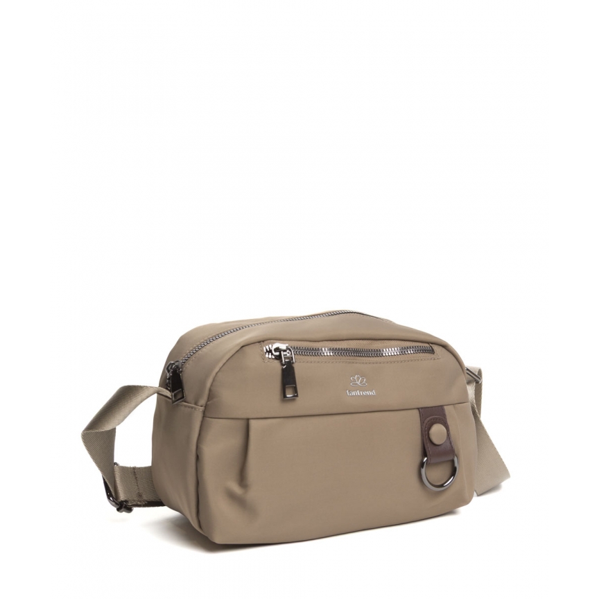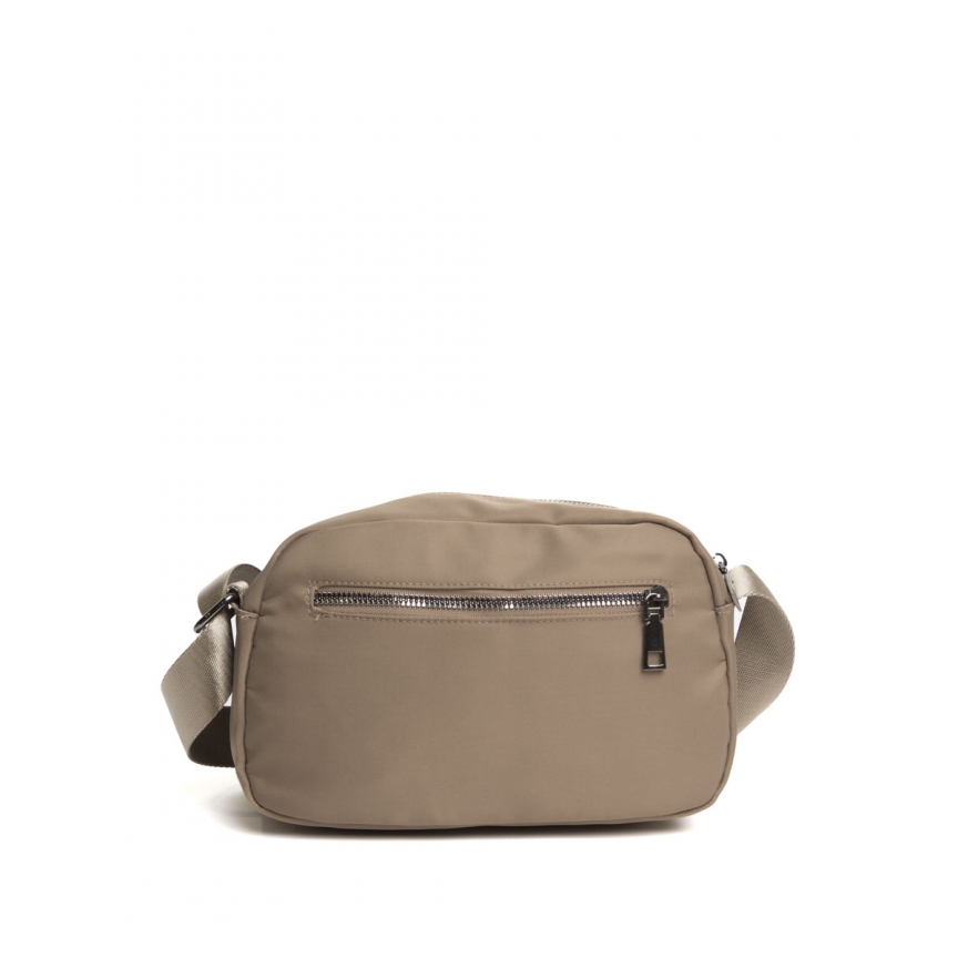 Mala de ombro em nylon com alça ajustável combinando. Dois bolsos com zíper, um frontal e um traseiro. Com chaveiro ou pingente.